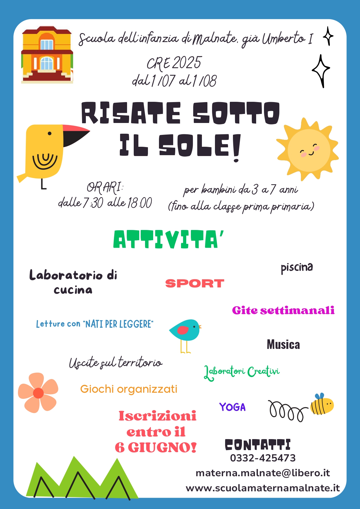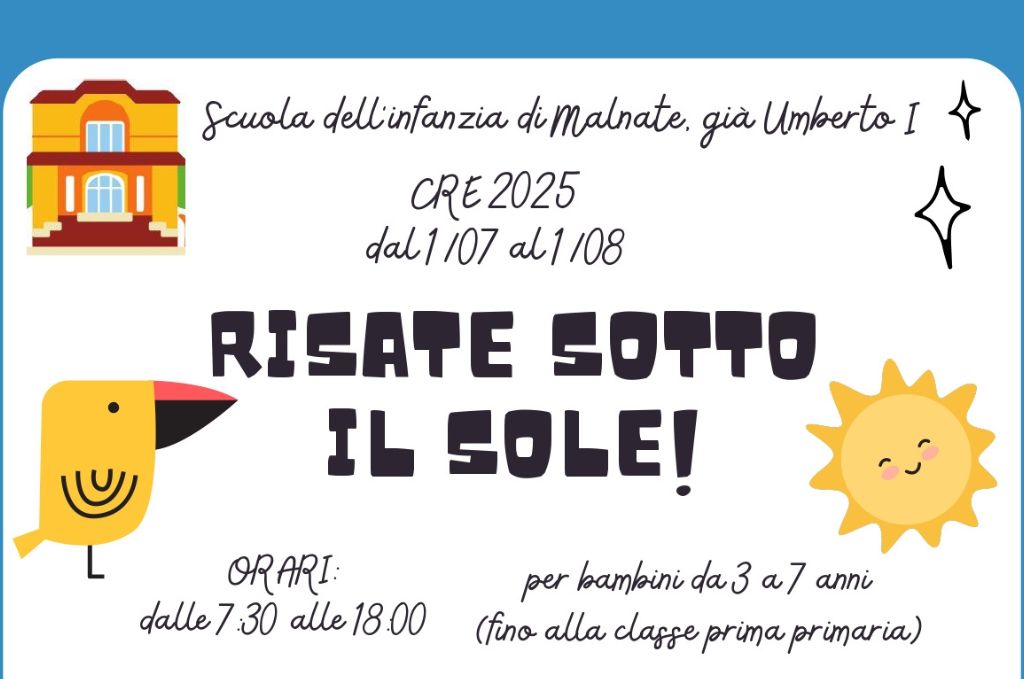 Il nostro Centro Ricreativo Estivo 2025 “Risate sotto il sole!” vi aspetta dal 01.07 al 01.08.
