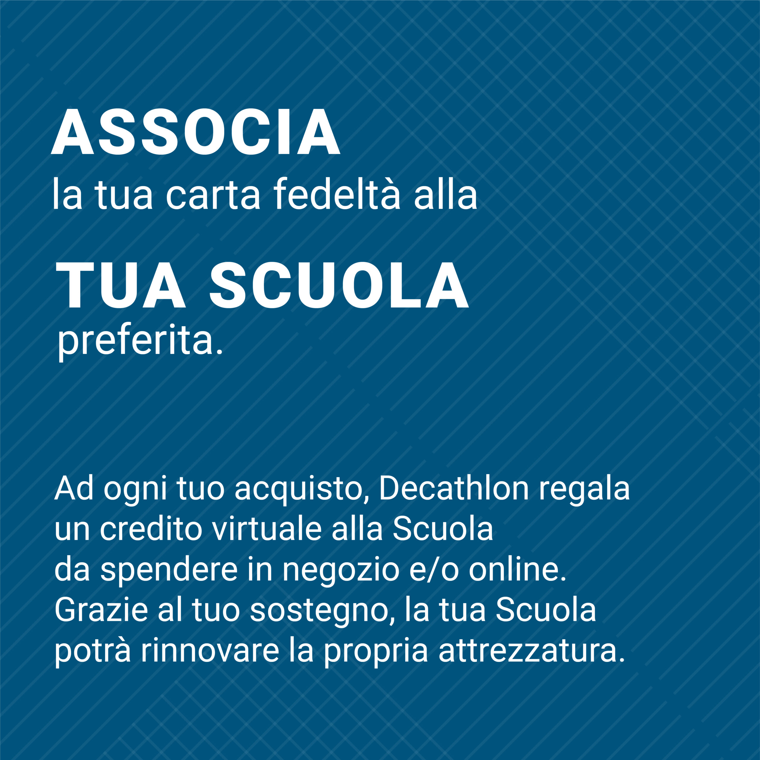 La nostra scuola ha aderito al progetto Decathlon relativo alla raccolta punti da convertire in buoni acquisto: per ogni acquisto effettuato dalle famiglie associate, Decathlon regalerà un credito alla Scuola!!!!!!