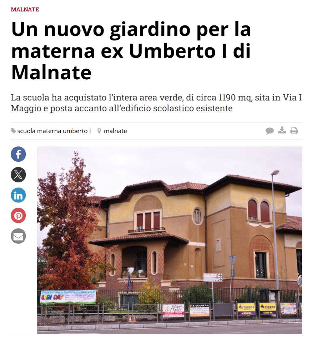 La scuola ha acquistato l’intera area verde, di circa 1190 mq, sita in Via I Maggio e posta accanto all’edificio scolastico esistente